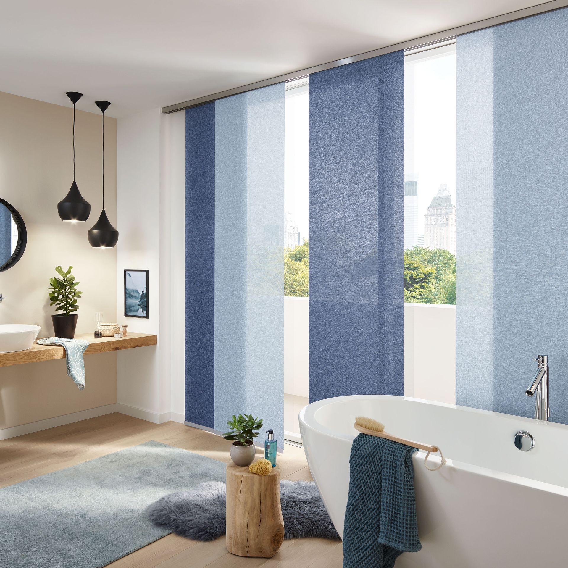 Die Paneele sind in individuellen Größen und praktisch unendlich vielen verschiedenen Stoffdesigns erhältlich. Die Paneele lassen sich einfach abnehmen und austauschen (Befestigung mittels Klettband). Die Montage der Schiebevorhänge erfolgt wahlweise an Wand oder Decke. Besonders für große Fenster, Glasfronten oder als Raumteiler bestechen Flächenvorhänge mit ihrer modernen, reduzierten Formensprache.