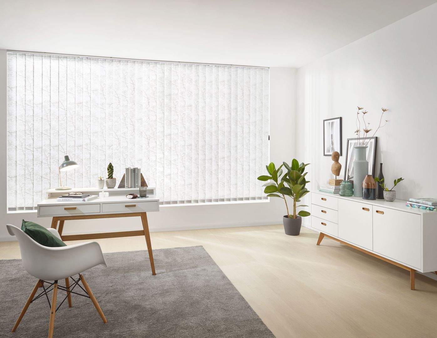 Wie wirkt ein Raum höher? Indem man das Vertikale betont. Diesem einfachen Gesetz folgt die Vertikaljalousie und schafft durch ihre großzügigen Lamellen ein Gefühl von Höhe, Freiheit und Luftigkeit. Sehr reduziertes Design und eine minimalistische Formensprache schaffen ein puristisches Ambiente, das Raum für Funktionalität lässt. Deshalb sind Lamellenvorhänge vor allem im Objektbereich und in der modernen Architektur sehr beliebt. Funktional sorgen sie für maximalen Sonnen- und Hitzeschutz, wobei durch die je nach Sonneneinstrahlung breiteren oder schmäleren Sichtschlitze - je nach Regulierung der Lamellen - für den nötigen Durchblick nach außen gesorgt und umgekehrt die Privatsphäre gesichert ist. Das Streulicht sorgt für ein angenehmes Lichtklima.