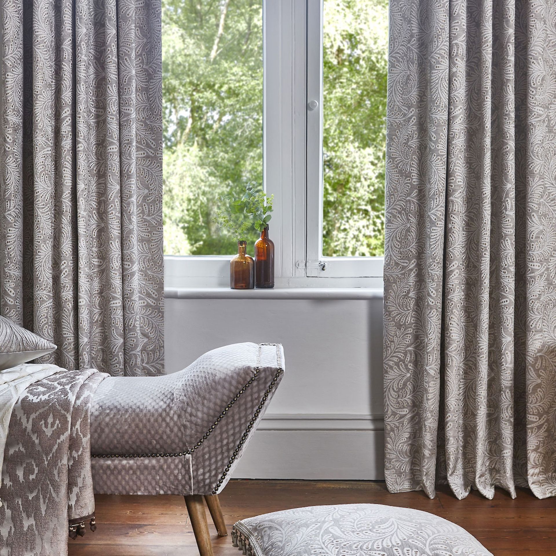 Raumhohe Vorhänge schweben entweder knapp über dem Boden oder liegen auf. Die schwebende Variante lässt sich besser sauber halten. Die aufliegende Gardine gibt einem Raum einen lässigen Chic, ist aber beim Staubsaugen oder Wischen unpraktisch.
